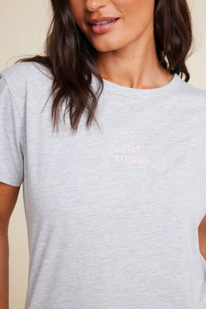 Vi engasjerer oss i årets Rosa sløyfe-aksjon! For hver solgte Stay Strong-t-skjorte donerer vi 300 kr til Rosa sløyfe-aksjonen, strong women lift each other up.