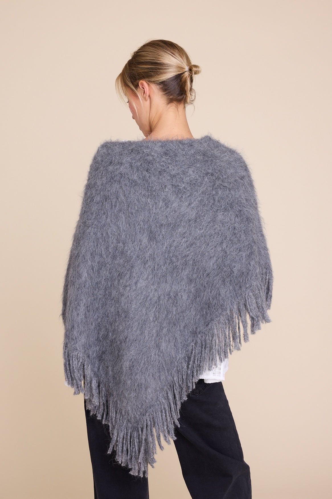 Vi introduserer denne sesongens poncho – laget av en myk, superfin blanding av alpakka og merinoull. Designet med en avslappet passform, rund hals, asymmetrisk form og frynsede kanter for et siste touch. Uanstrengt og allsidig, perfekt å bruke over ethvert antrekk.