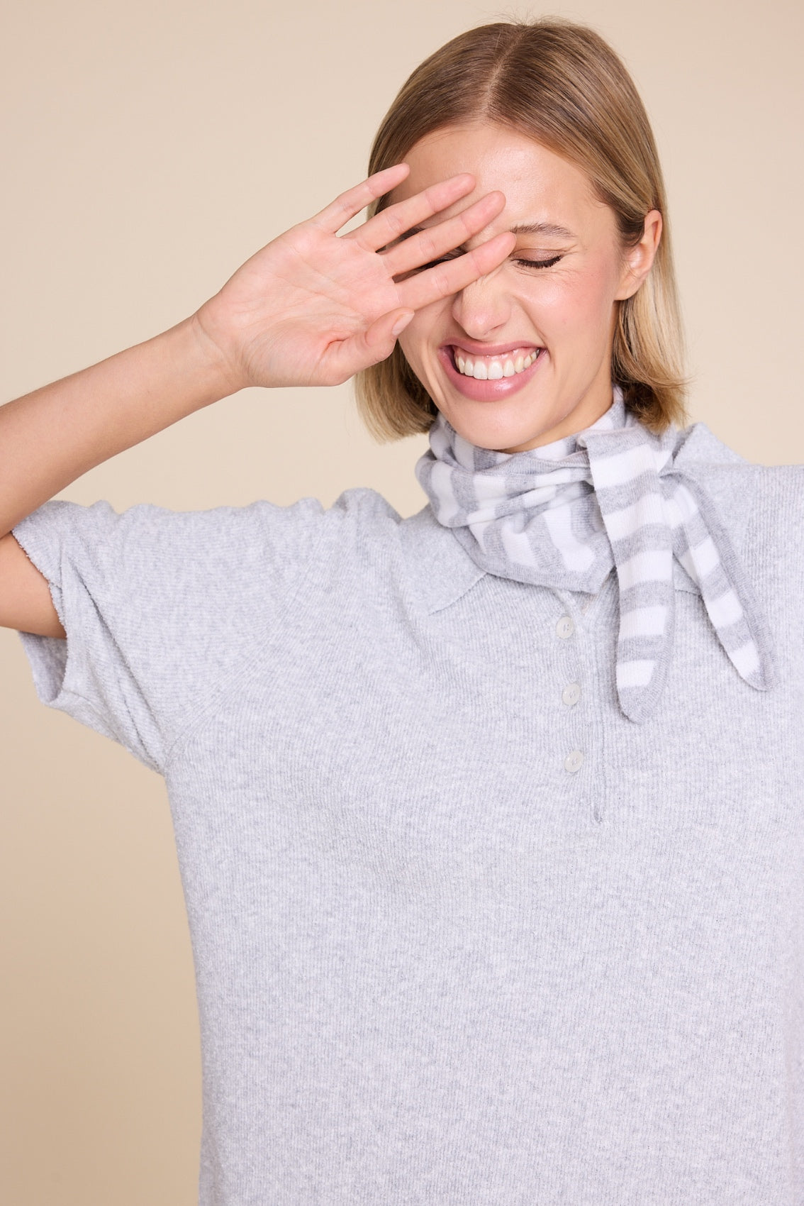 Vi introduserer vårt nye favorittskjerf – et must-have i garderoben din. Dette strikkede skjerfet er laget av en luksuriøs blanding av kasjmir og ultrafin merinoull. Det er designet i en trekantform, perfekt for å knytes rundt halsen og føles utrolig mykt mot huden. Allsidig og stilig, og det kan brukes på flere måter – som et skjerf, et sjal eller til og med som et hodeplagg.