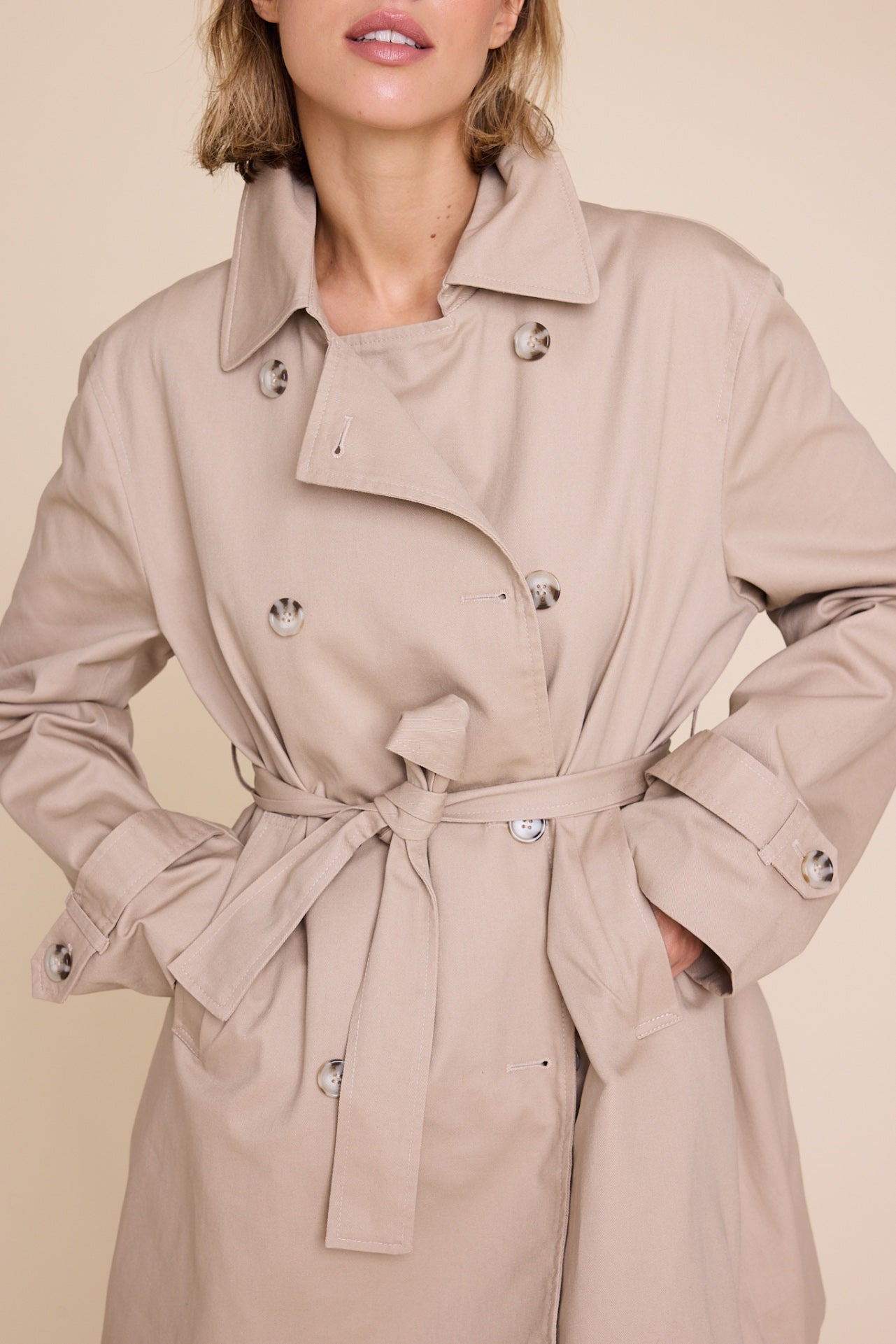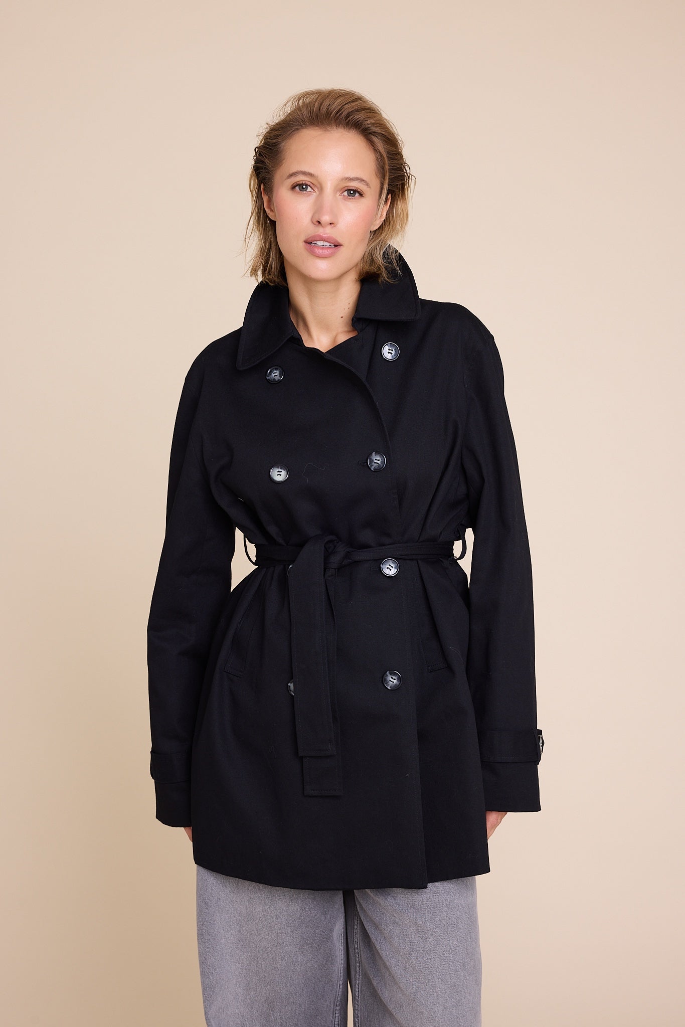 Sesongens kuleste trenchcoat: Robbie! Denne dobbeltspente trenchcoaten er laget av 100 % bomull og har en klassisk krage, stilige knappedetaljer på mansjettene og praktiske sidelommer. Med sin rette og tidløse passform er Robbie både uanstrengt og allsidig – et plagg du vil bruke igjen og igjen.