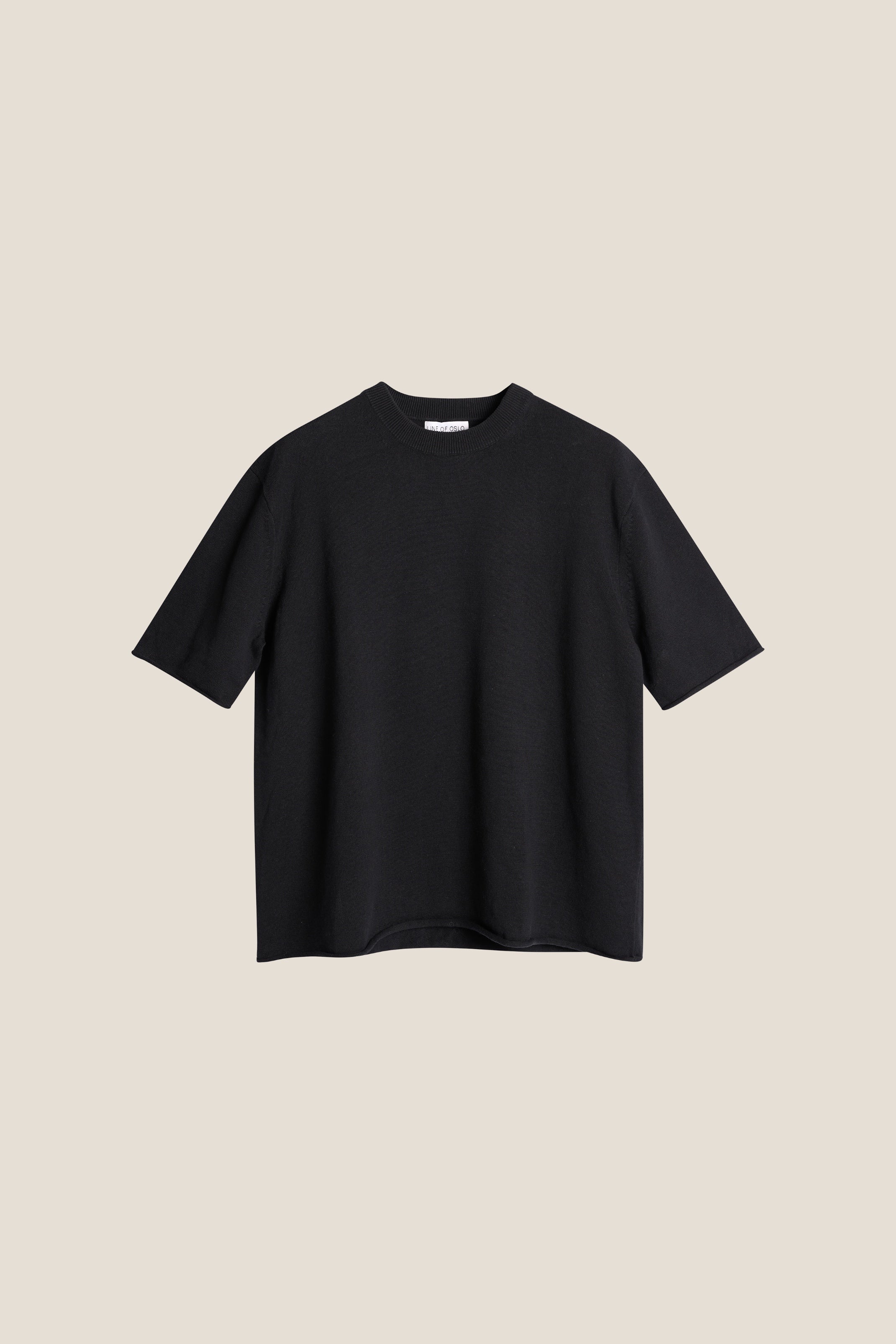 Vi introduserer et nytt basisplagg: Terry T-skjorte. Denne strikkede T-skjorten er laget av en myk bomulls blanding og har en oversized passform med senkede skuldre og en klassisk rund hals med subtile ribbede detaljer. Terry er perfekt å bruke under en blazer, alene med et skjørt eller til favoritt jeansene dine.