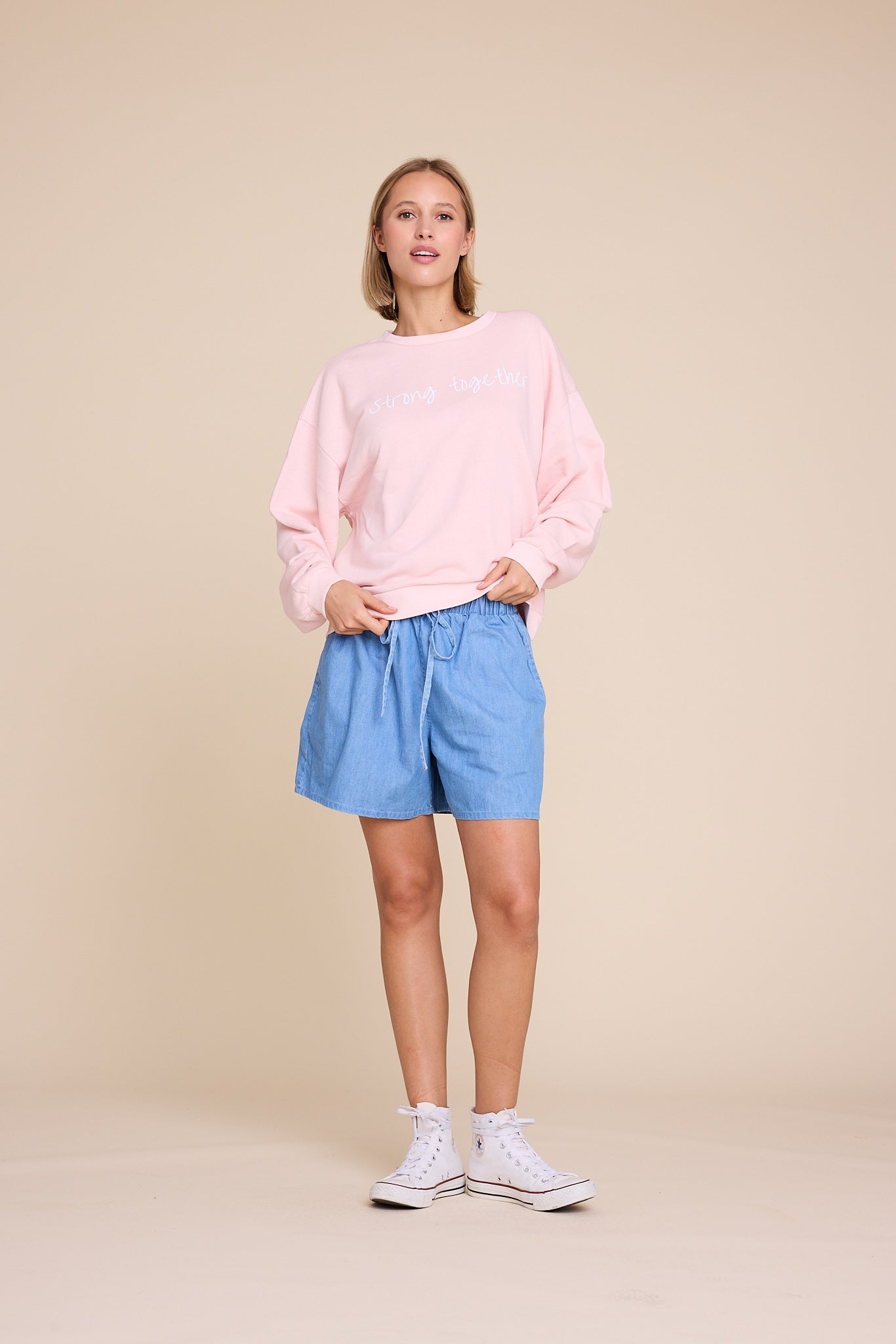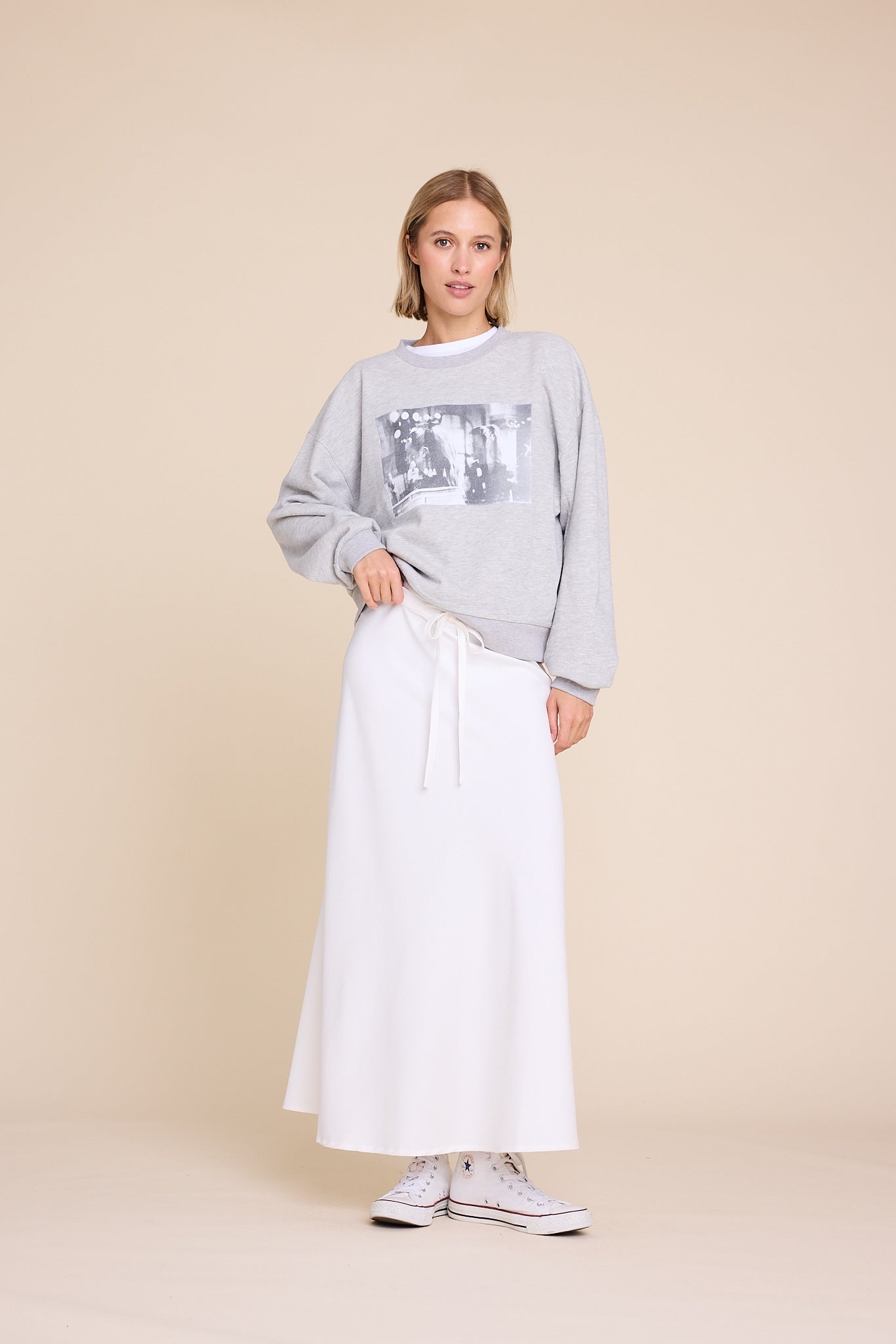 Universe er en statement genser laget av myk bomull for komfort og hverdagsbruk. Den er designet med en klassisk rund hals og en rett passform, og har et trykk som gjenspeiler kolleksjonens visjon, «Stronger Together». Bruk den med favorittjeansene dine eller style den med et skjørt for et uanstrengt, moderne utseende.