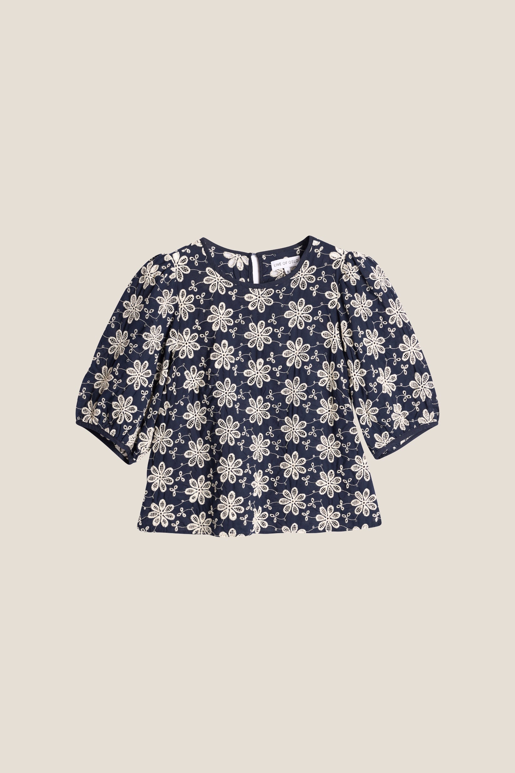 Isabel Lace er en av våre favoritt bluser, nå tilbake i et vakkert blondedesign laget av en myk bomulls blanding. Den har en rund hals med knappelukking bak og trekvartlange ermer med en subtil voluminøs fasong. Perfekt å style med jeans eller et skjørt for et uanstrengt og elegant utseende.