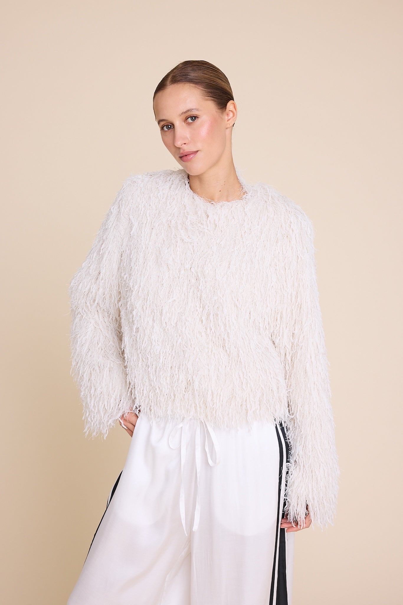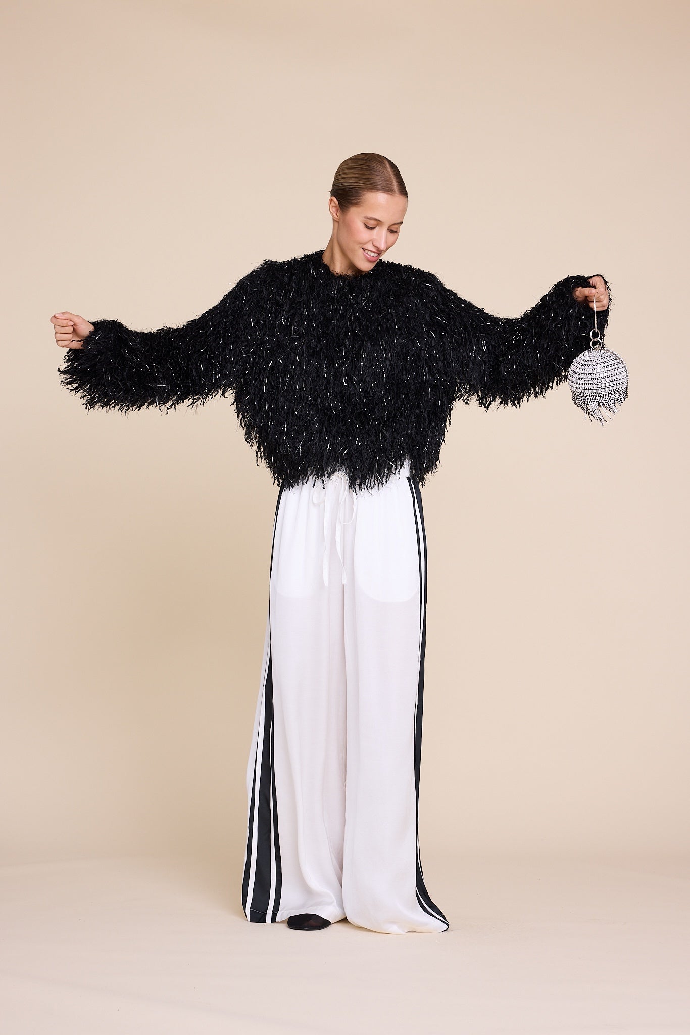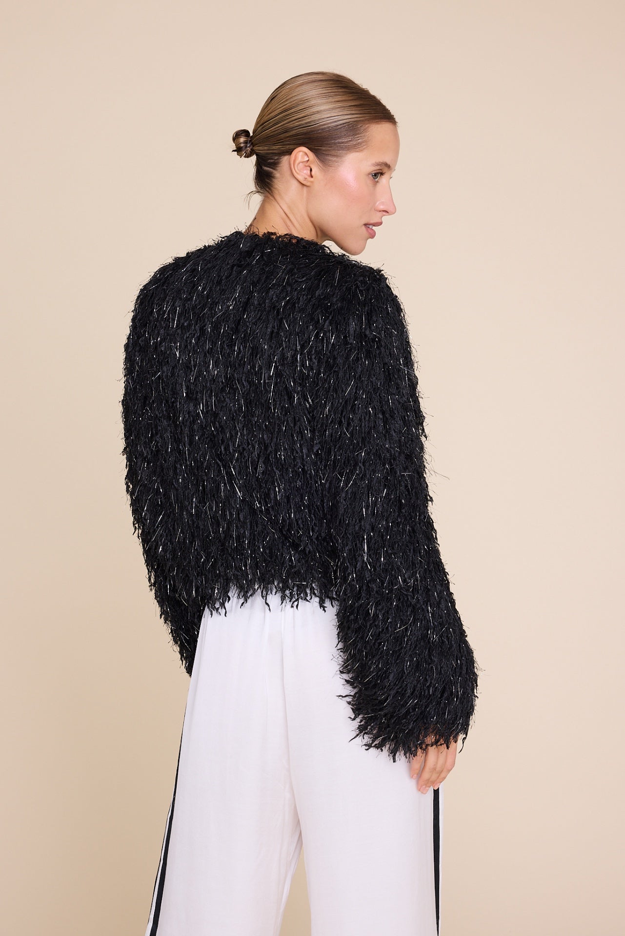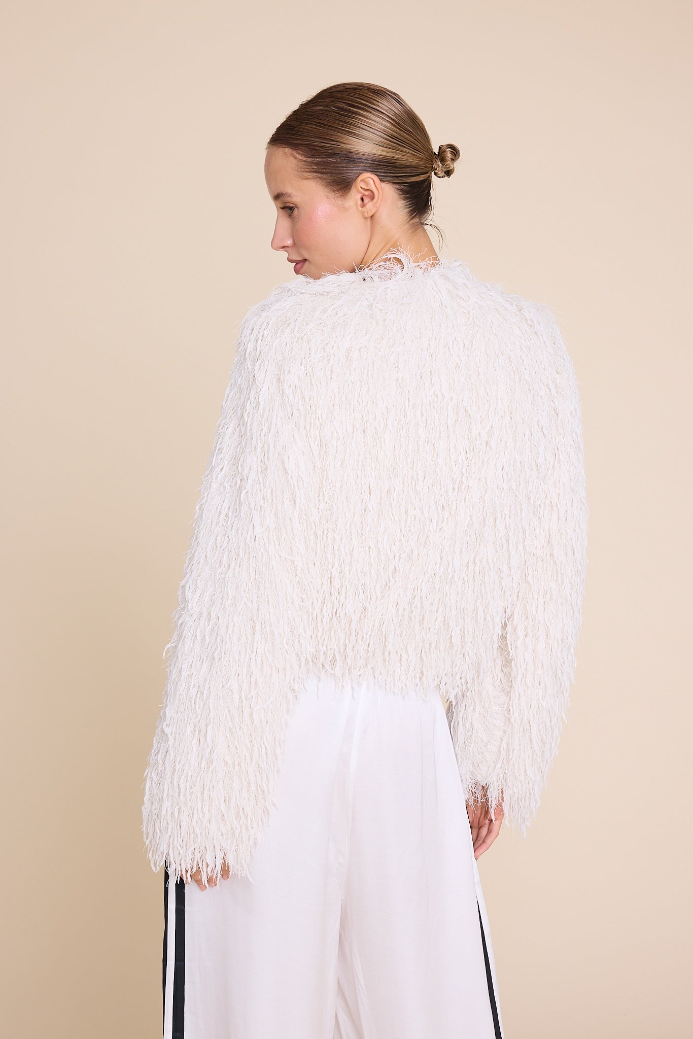 Vita er sesongens statement-jakke. Den har elastiske detaljer nederst og på mansjettene, hemper som lukkemekanisme i front og praktiske lommer. Jakken er avsluttet med elegante frynsedetaljer som gir bevegelse og tekstur, og tilfører antrekket det lille ekstra.